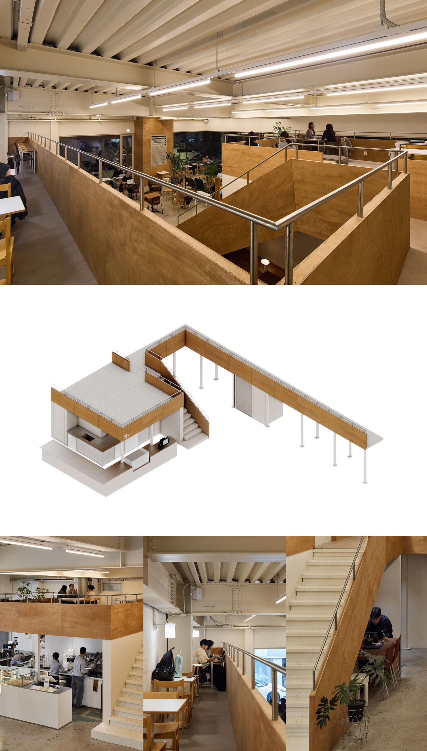 하나의 동선으로 연결된 메자닌은 공간 전체를 조망하며, 때로는 혼자서 또 삼삼오오 모여서 이야기 나눌 수 있는 공간입니다.