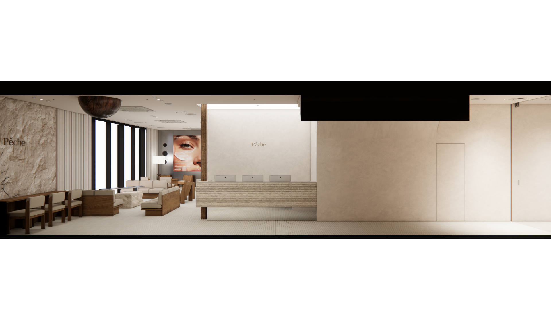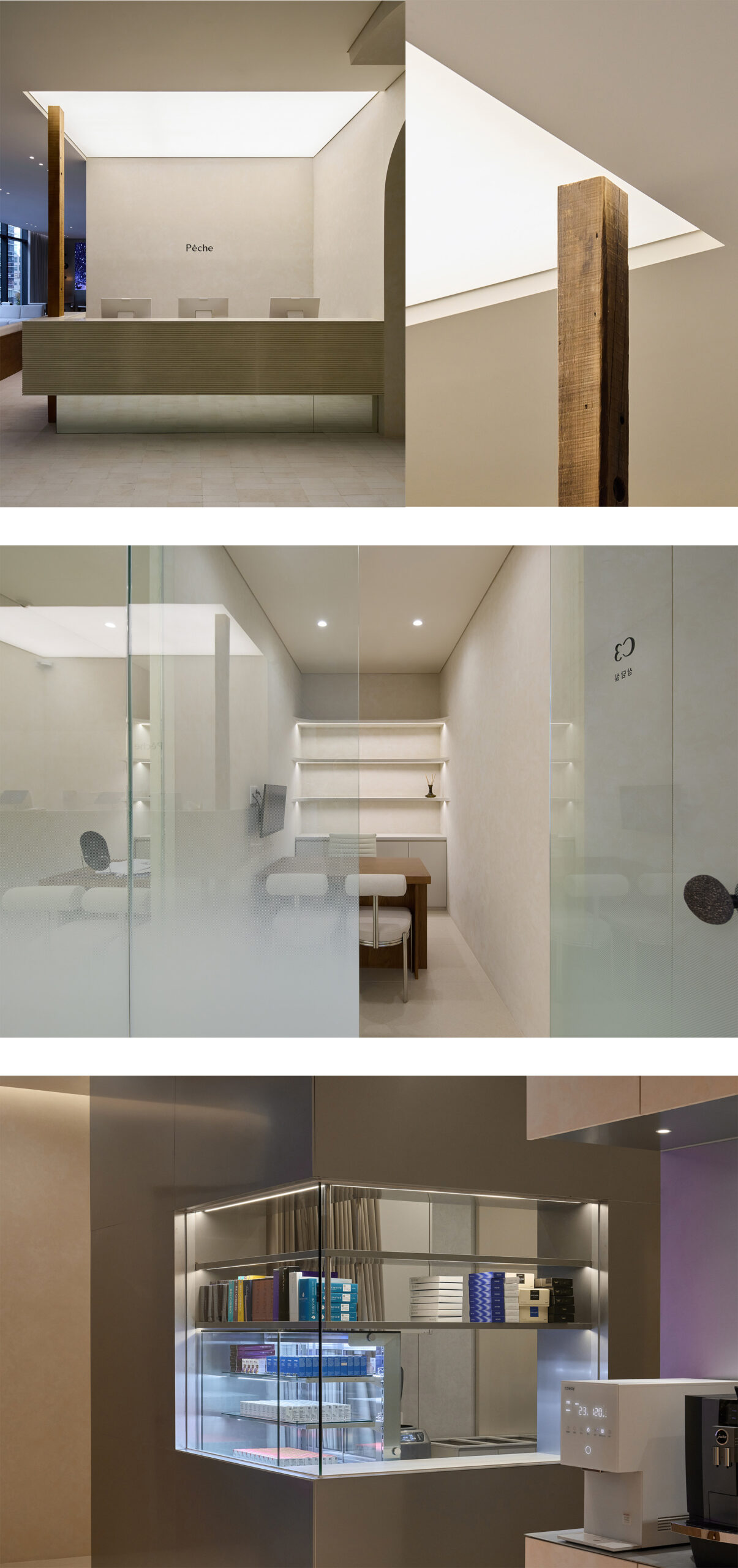 우리는 ‘페슈(Peche: 프랑스어로 복숭아)’라는 브랜드명이 가진 부드러움과 그 이면의 단단함을 공간의 재료로 풀어내고자 했습니다.