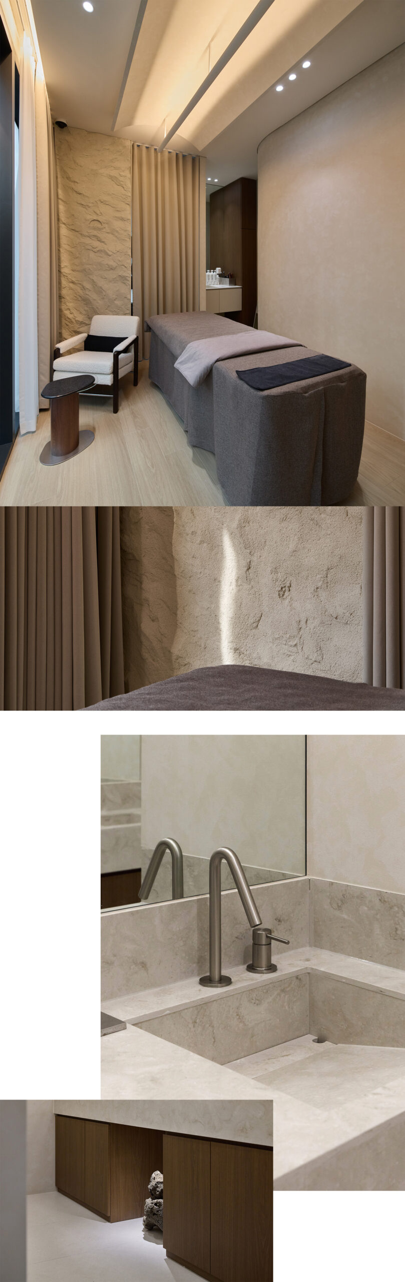 고객은 이 공간에서 소재가 주는 압도적인 안정감을 느끼며, 자신이 받는 케어가 일시적인 것이 아닌 깊이 있는 진심임을 체감하게 됩니다.