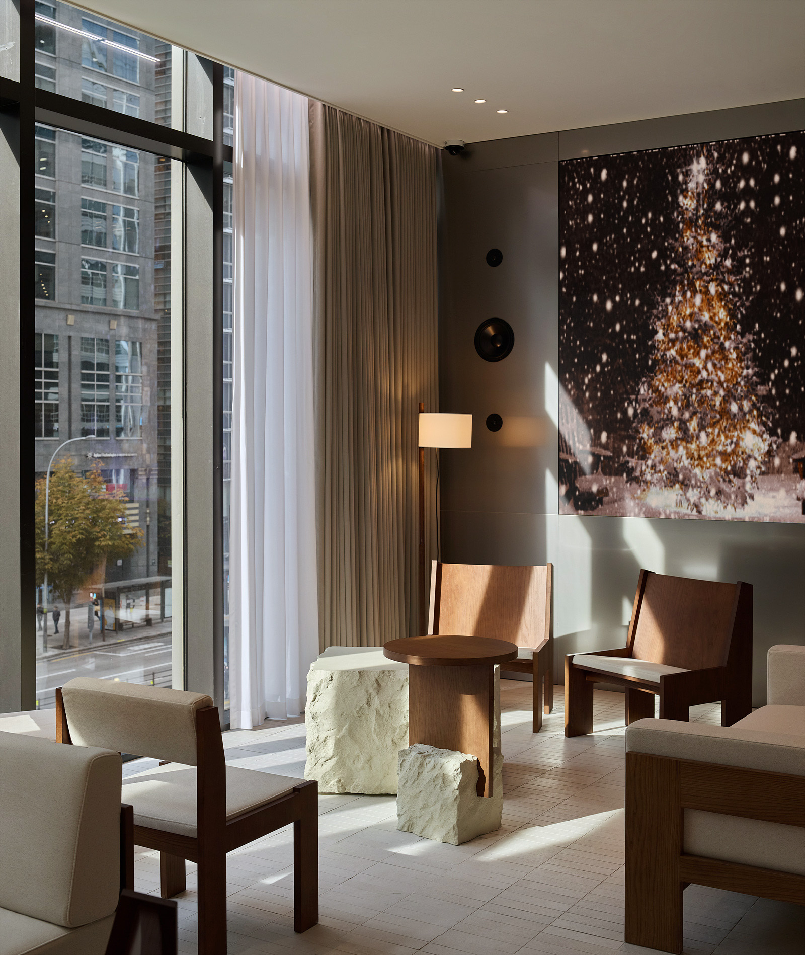다양한 자연 소재들이 충돌하고 만나며 만드는 비율과 생경한 경험들은 편안한 휴식과 투명한 전문성이 공존하며 부딛히고 진중하면서도 가볍고 부드러운 이미지를 만들어 냅니다.